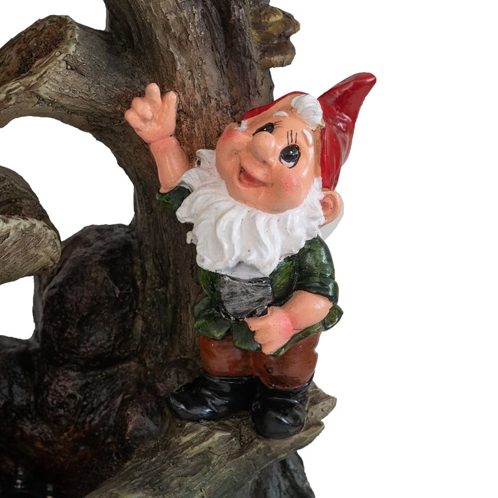 An enchanting display straight from German folklore, this decorative water fountain showcases a pair of colorful garden gnomes that are exploring the curling branches. Masterfully crafted from durable polyresin, this fountain offers great resistance to the elements, making for a long-lasting fixture for both indoor and outdoor spaces.