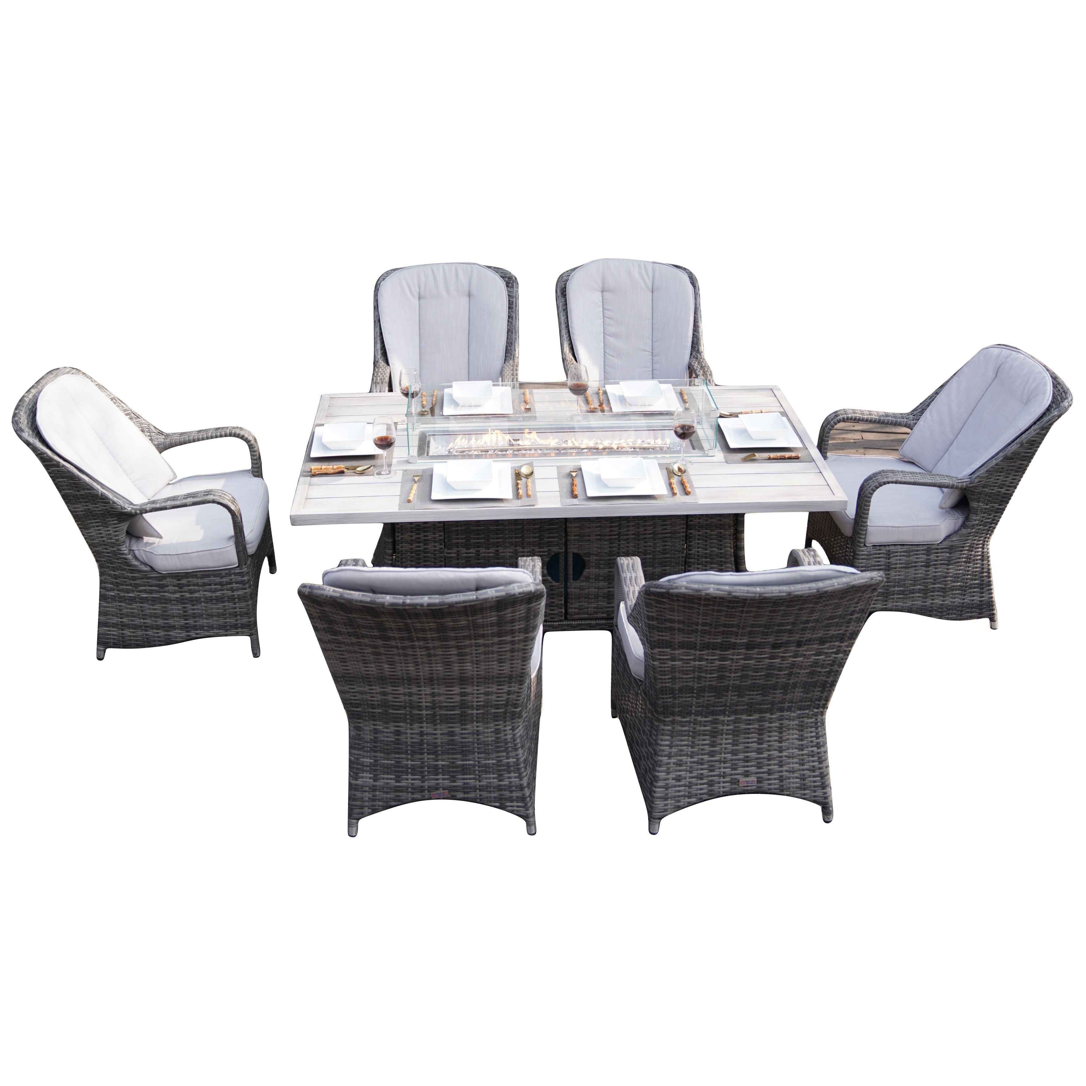 Direct Wicker Patio Fire Pit Dining Set 6-Seat Rectangular Aluminum Table with Rattan Chairs