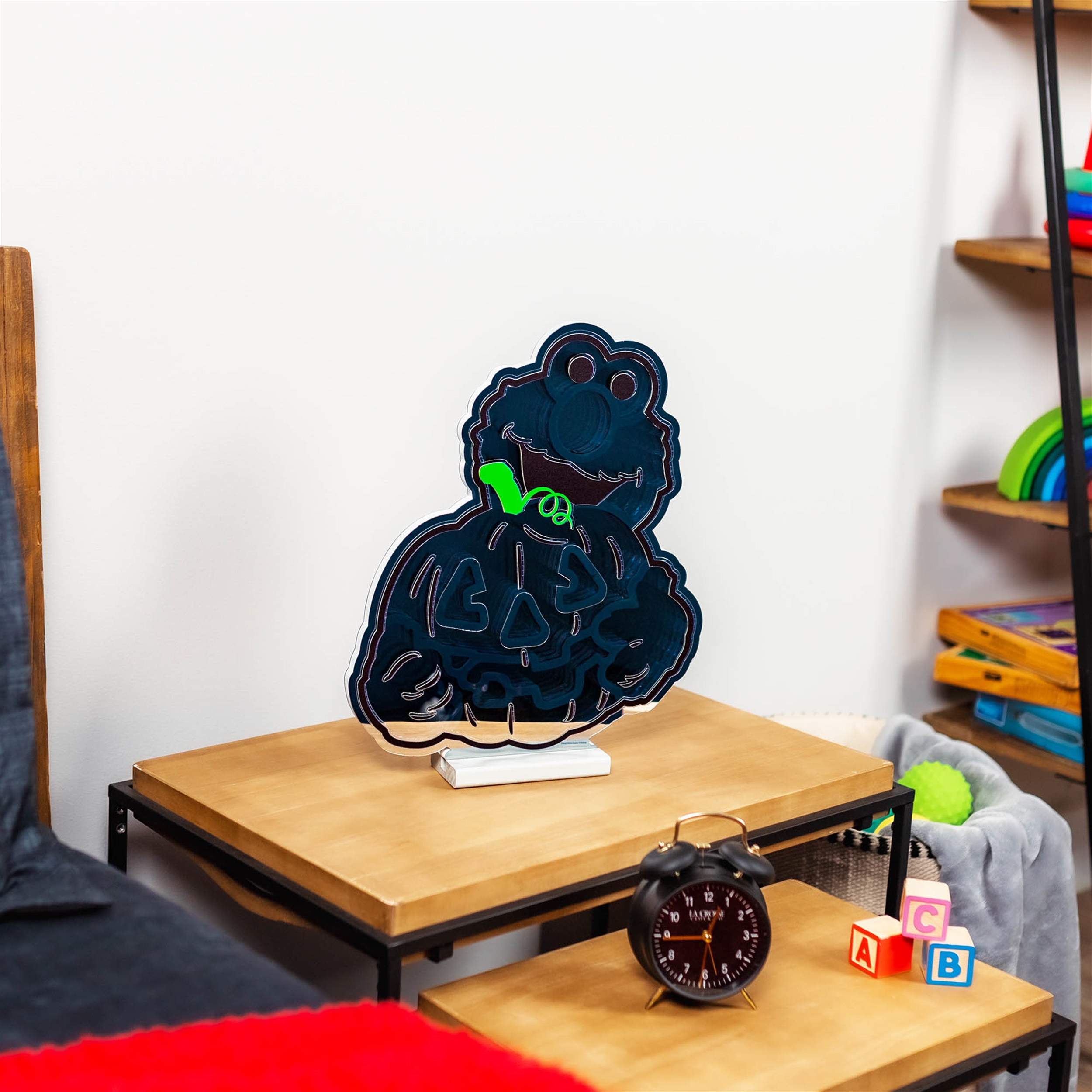 Get ready for a BOO-tiful Halloween with the Sesame Street Elmo Pumpkin Ekkolight! Featuring beloved friend Elmo joyfully holding a festive, smiling Jack-o’-lantern, this LED light glows in bright orange and red tones, bringing warmth, fun, and just the right amount of spooky cheer to your Halloween decor. Perfect for kids' rooms, play spaces, or family holiday decor, this playful and heartwarming design is sure to brighten up your seasonal decor spaces. Created in collaboration with Sesame Street, let Elmo brighten up your holidays with his big smile and boundless energy!